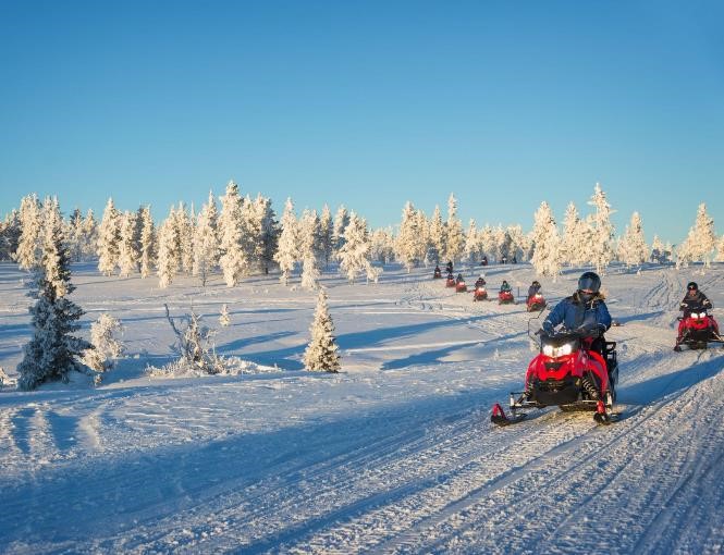 Départ pour votre safari motoneige. Cette excursion vous transportera au cœur de la nature lapone : champs de neige étincelants, paysages inoubliables, riches de rêves et d’évasion.