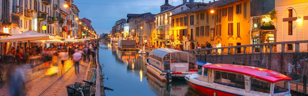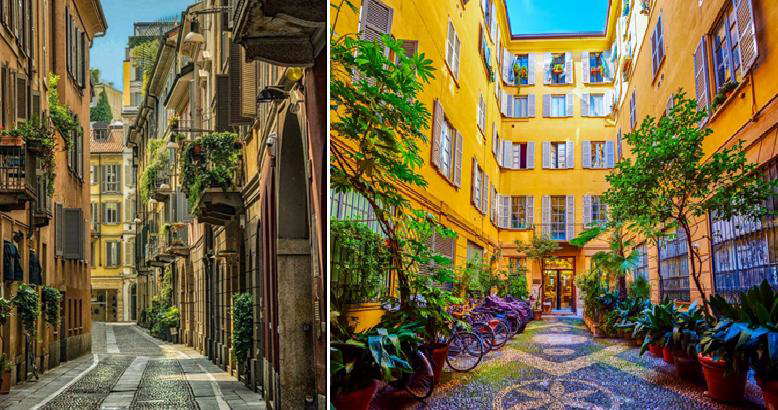 Le quartier des Navigli est le plus pittoresque de la ville. Les Navigli sont un système de canaux et voies navigables dont la construction a duré 7 siècles : le premier canal a été réalisé au 12e siècle, lorsque la construction de Naviglio Grande commença avec un système de barrages inventé par Léonard de Vinci au 15e siècle. Les canaux, qui étaient utilisés pour transporter des marchandises et pour approvisionner Milan en eau, sont bordés d’anciens palais aux couleurs vives et surmontés par des ponts en fer. Aujourd’hui, ils sont bordés de restaurants et ses bars accueillants. Ici, on a l’impression d’être assis le long d’un authentique canal avec de nombreuses petites boutiques d’artisans.